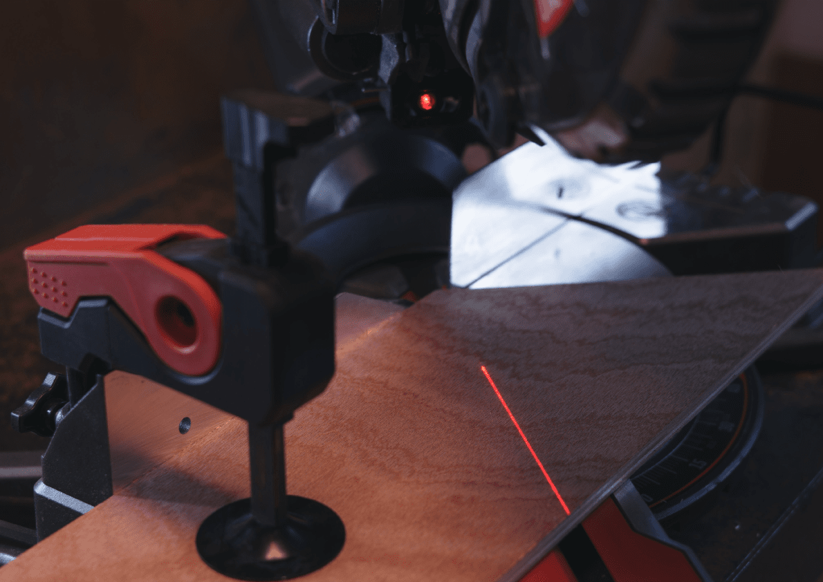 - Kademesiz olarak ayarlanabilen gönye kesim açıları ve sol ve sağda (0°, 15°, 22,5°, 31,6°, 45°) pozitif durdurucular.